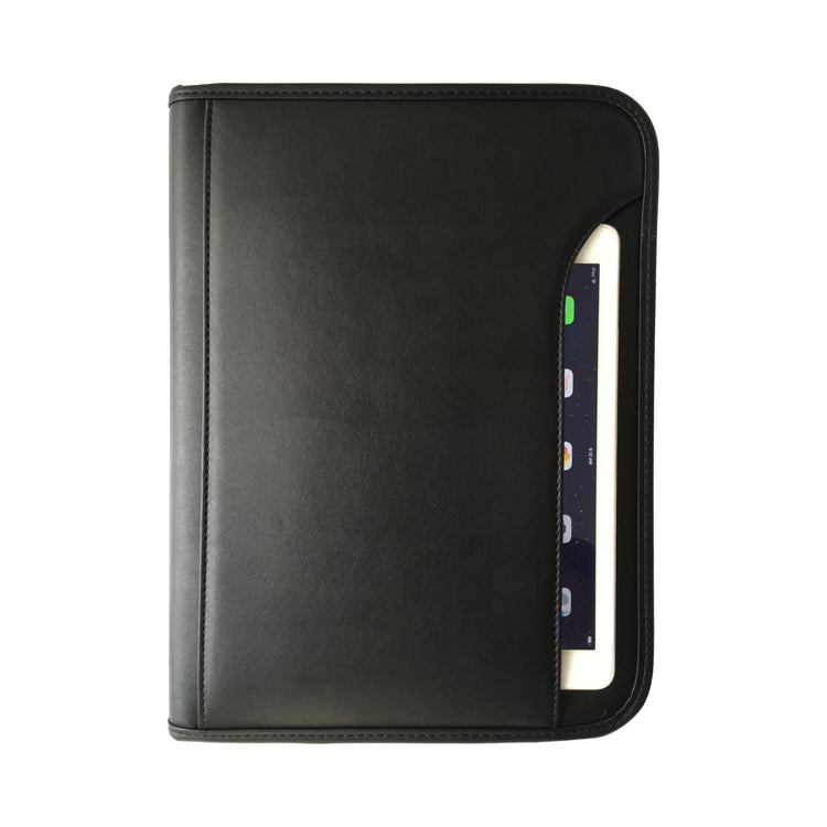 Business Zippered Padfolio w Calculator, Notepad Organizer Leatherette Black