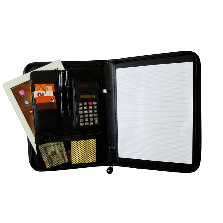 Zippered Padfolio Organizer Notepad w/ Documents Holder and Calculator and Legal Pen Holder-Great for work, looking professionally for job interview and school.