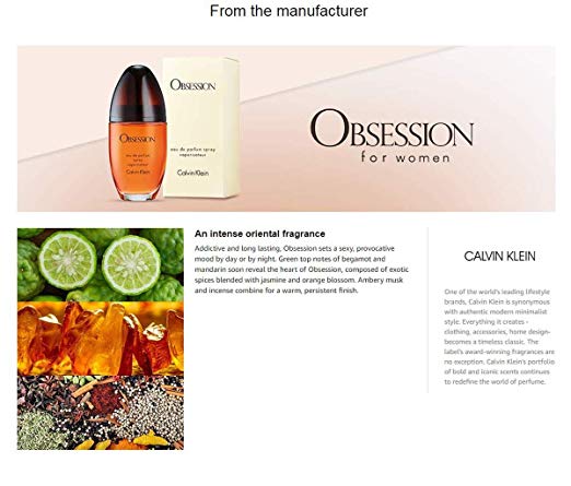Calvin Klein OBSESSION Eau de Parfum, 3.4 Fl Oz (Obession-3.4 FL Oz) by CK..
