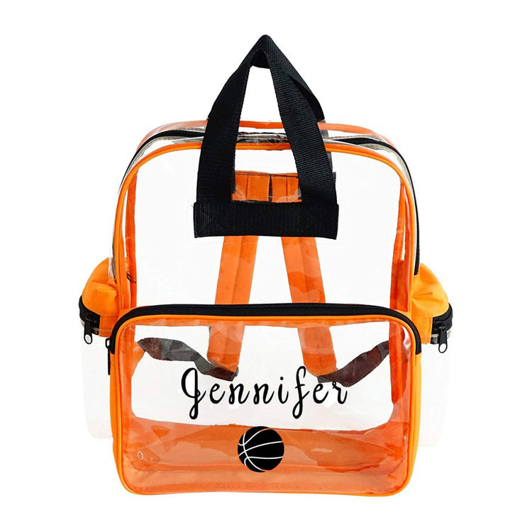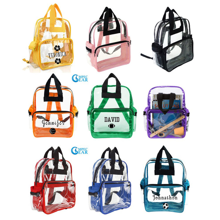 Custom Clear Backpack with Own Name And Theme, Be Unique Stand Out - 15" - Color - Black, Red, Puple, Gold, Teal, Gray, Pink, Orange, Navy