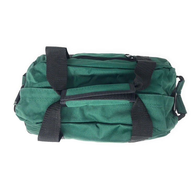• FEATURES: Zippered main compartment, w/ zippered front pocket, top velcro handle, two side handles and detachable shoulder strap.