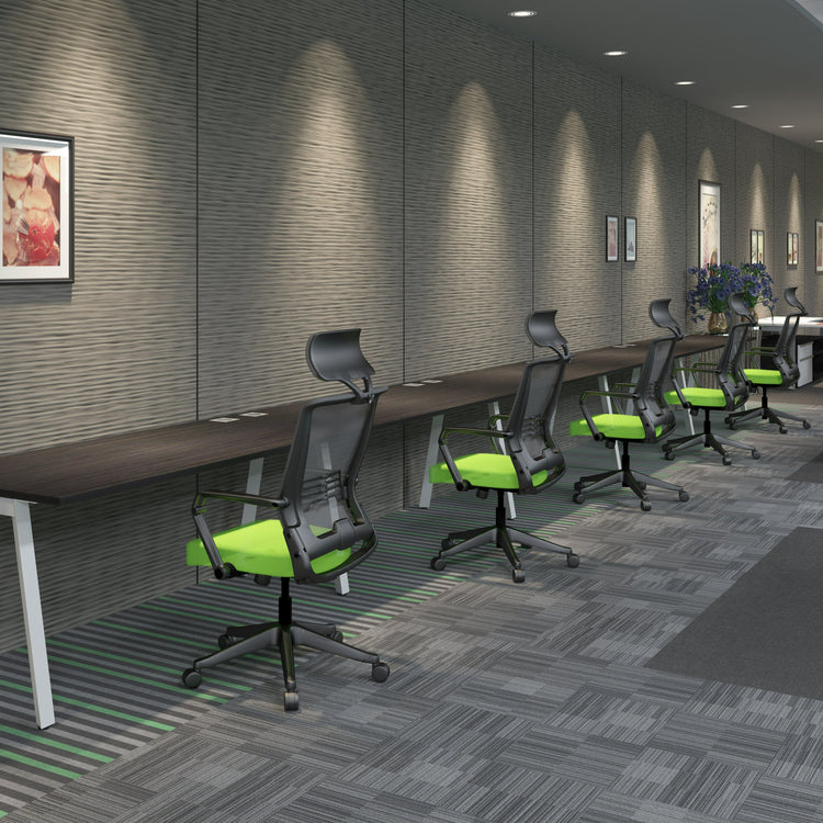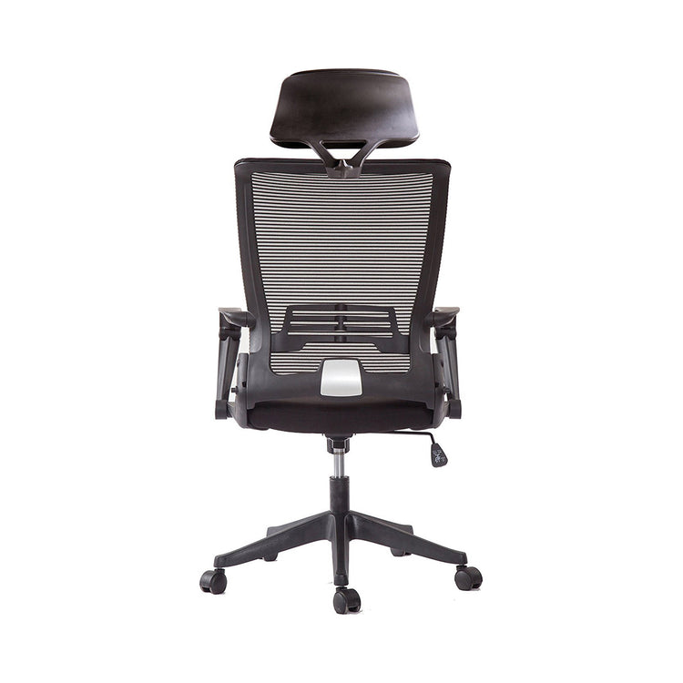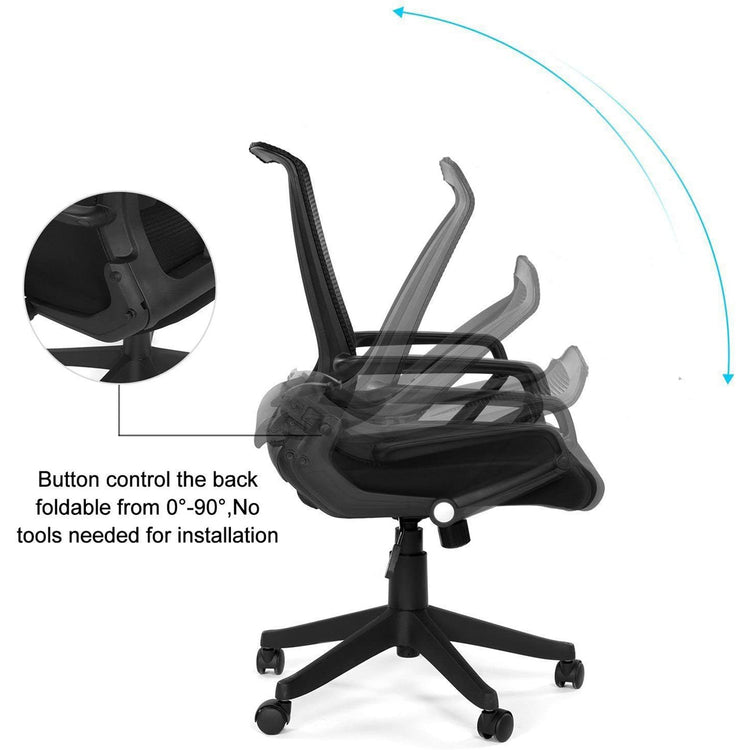 * FEATURES: Give your office comfy and casual seating with the KAIRO Task Chair. * NO TOOLS REQUIRED ASSEMBLY * Easy flip up or fold down back * Optional headrest * Simple one touch Pneumatic adjustable height * Tilt tension mechanism * Waterfall high density molded foam for longevity use * Nylon 5 star base * Breathable mesh back with adjustable lumbar support