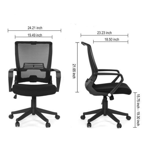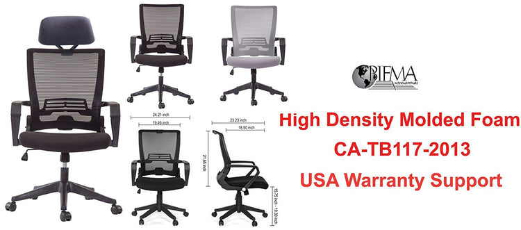 *Ergonomic Design Office Chair: High back with or without headrest ,SEAT SLIDER CHAIR - adjustment for different person's height, adjustment lumbar support and seat height,360-degree swivel,gives extra relaxation and comfortable for long day work people. Heavy duty nylon base and smooth-rolling casters with weight capacity of 250 poundsEasy to Install: The instructions are very easy to follow, you just need to count a few screws and bolts, you can assemble it * FEATURES: Give your office comfy and casual seating with the KAIRO Task Chair. * NO TOOLS REQUIRED ASSEMBLY * Easy flip up or fold down back * Optional headrest * Simple one touch Pneumatic adjustable height * Tilt tension mechanism * Waterfall high density molded foam for longevity use * Nylon 5 star base * Breathable mesh back with adjustable lumbar support * MEASUREMENT: Chair Measures 27" L x 26" D x 44" H overall. Seat height measures 17.5" - 21.5" H * COLOR: Come in Black mesh with black fabric or Grey mesh with Grey fabric. Quality Guarantee: 5 Years warranty on parts and 1 Year warranty on foam and fabric  .
