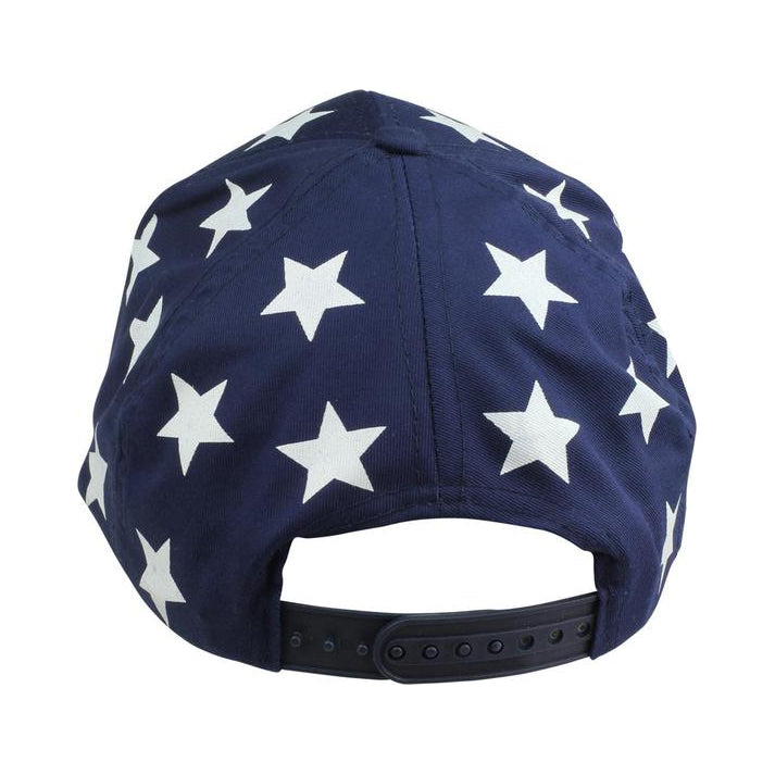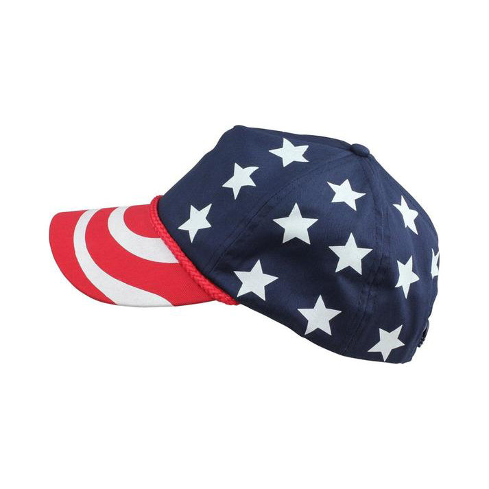 USA-5 - USA Stars & Striples Cap * Cotton Twill * 5 Panel w/ Half Moon Stay * Plastic Adjustable Snap Closure.