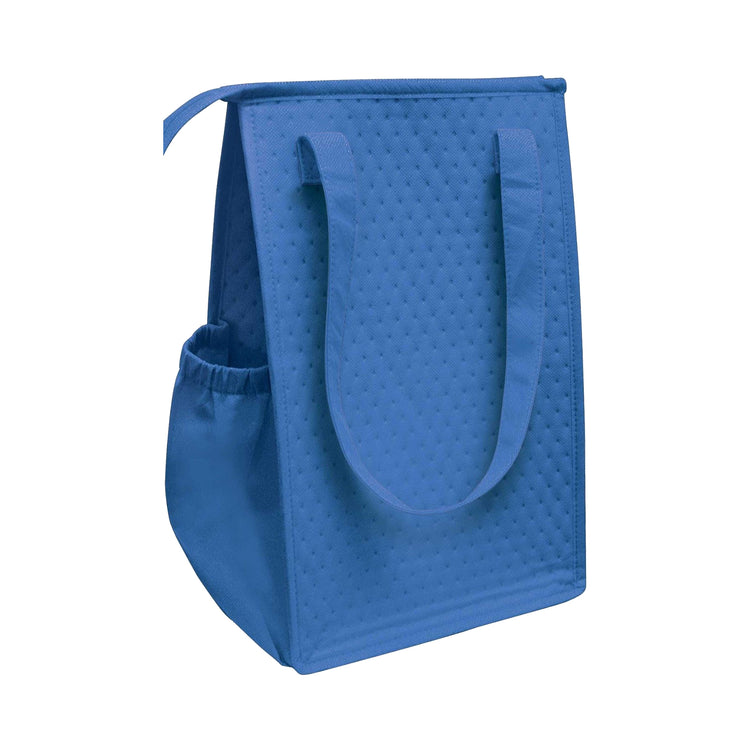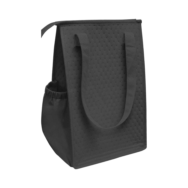 Why struggle to fit your tall water bottles and your adult-sized lunch into an ordinary, small sized lunch bag? Our 14” tall insulated cooler bag will hold tall drink or wine bottles or beverage cans with plenty of room for an adult-sized lunch Why our Tall Insulated Adult Lunch Bag Coolers are superior to similar products: - Our Lunch Box for Adults has one side pockets roomy enough to hold extra drinks, snacks, utensils, wet wipes, etc. The exterior business card/name tag holder easily identifies your bag at the office or school. - Versatile, multi-use bag can be used as a water bottle or wine bottle carrier stashed with sandwiches, snacks, or cheese. Perfect for outdoor activities such as picnics, concerts, tailgating, and camping, this lightweight bag also doubles as a convenient mini-diaper bag for moms or dads. - Side gussets expand when in use and fold in when empty for compact storage. EXTRA TALL – 14” high to accommodate one large 1 liter – 40 oz. water bottles or wine bottles. 2 interior holder sleeves help prevent bottles from tipping over. Plenty of room for snacks or lunch too! Even holds up to 12 cans of your favorite beverage. LIGHTWEIGHT – made of durable non-woven fabric with an insulated liner and reinforced carry straps to provide plenty of room without adding extra weight. Side gussets expand to allow the zipper top to close when packed full; gussets fold in and tuck under the zipper when not full to allow for compact storage.(St3091)