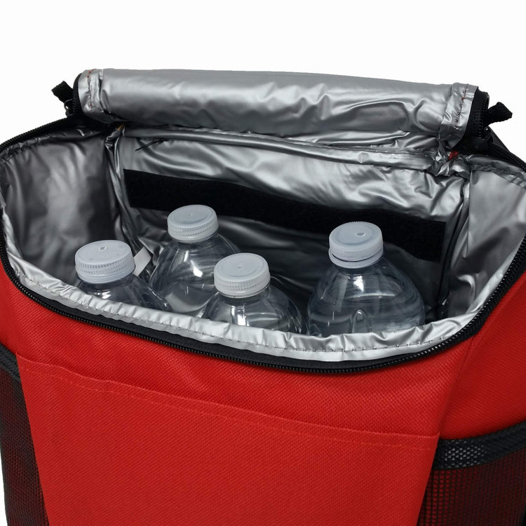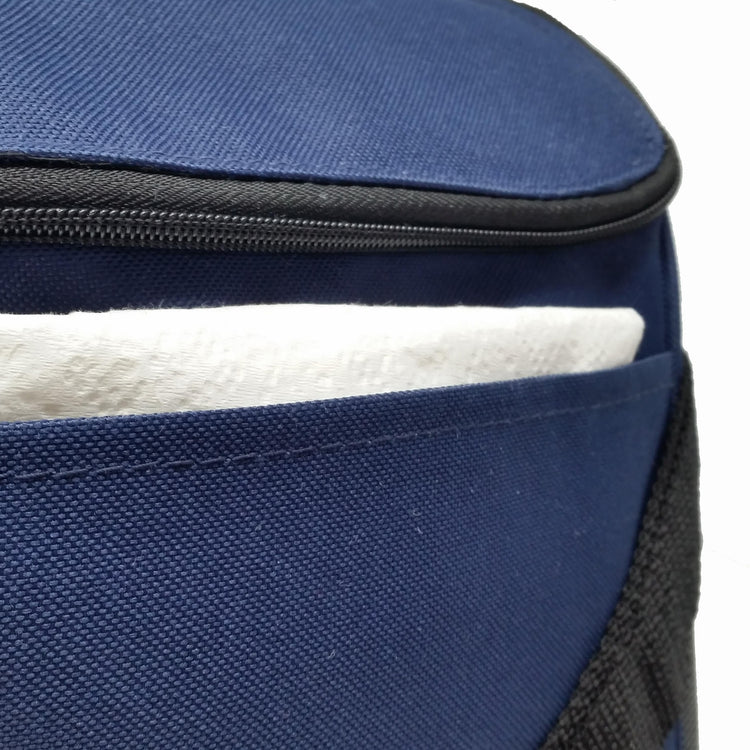• Main compartment with 2-way zipper opening flaps which makes it easy to take out food and snacks, roomy enough to pack a lunch for 2 in or 16cans. One large zip around front pocket with a slide pocket which can put utensils, can opener, napkins, wallet, keys, etc
