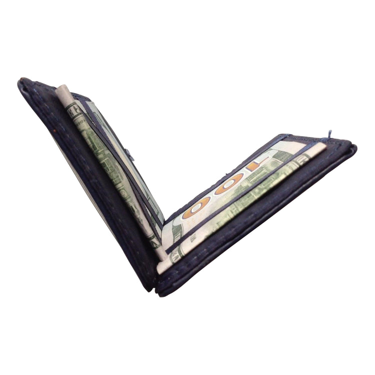 2 tight outside pockets on each side, it firmly holds up to 4 credit cards. Inside magical holder will trap cash, receipts, game/movies tickets, business cards or parking stubs. Simply insert the item & close the wallet, then