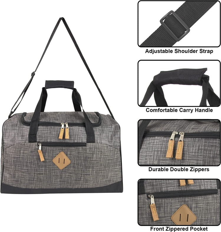 • TECHNICAL DETAILS: These overnight bags measure 20” x 12” x 11.5” and are constructed of rugged, durable polyester cloth materials