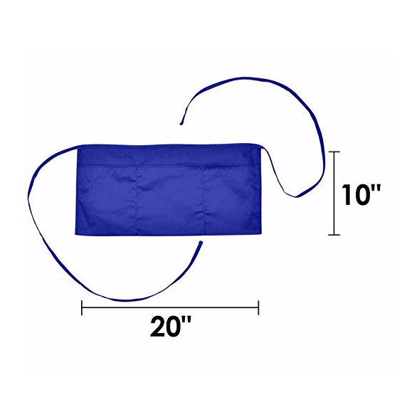 Waist Apron with 3 Pockets Poly Cotton Commercial Restaurant Home Bib Spun, 2-Pack, Royal