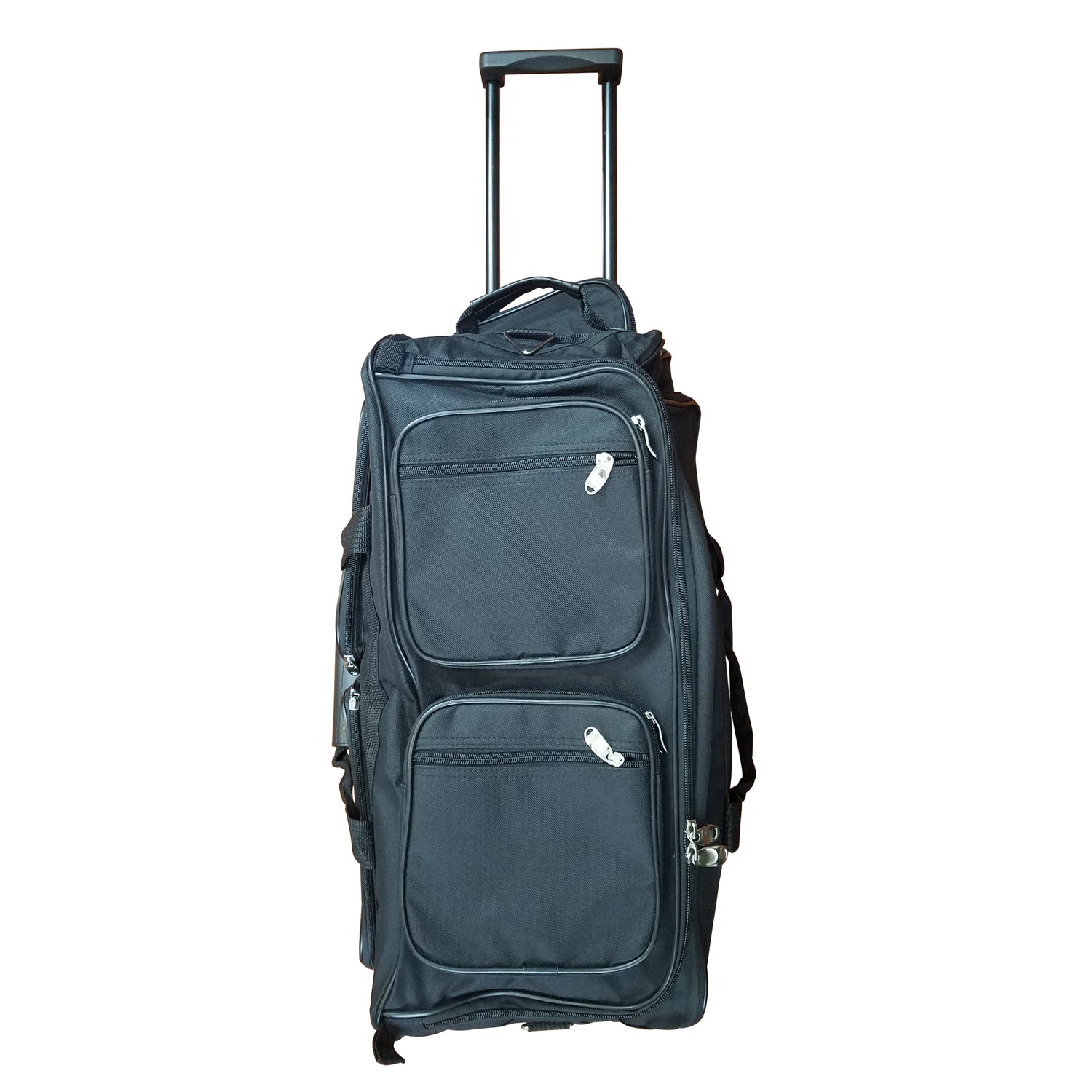 22" Black Rolling Duffel Bag With 5 Pockets For Office Work Exercise Gym Outdoor