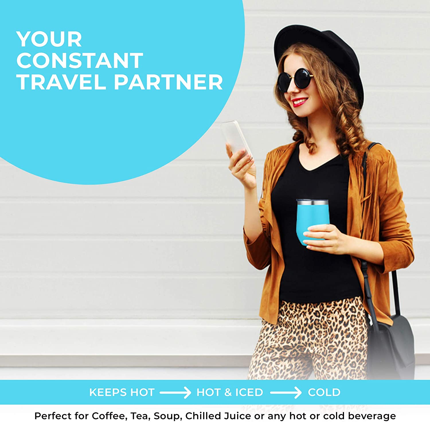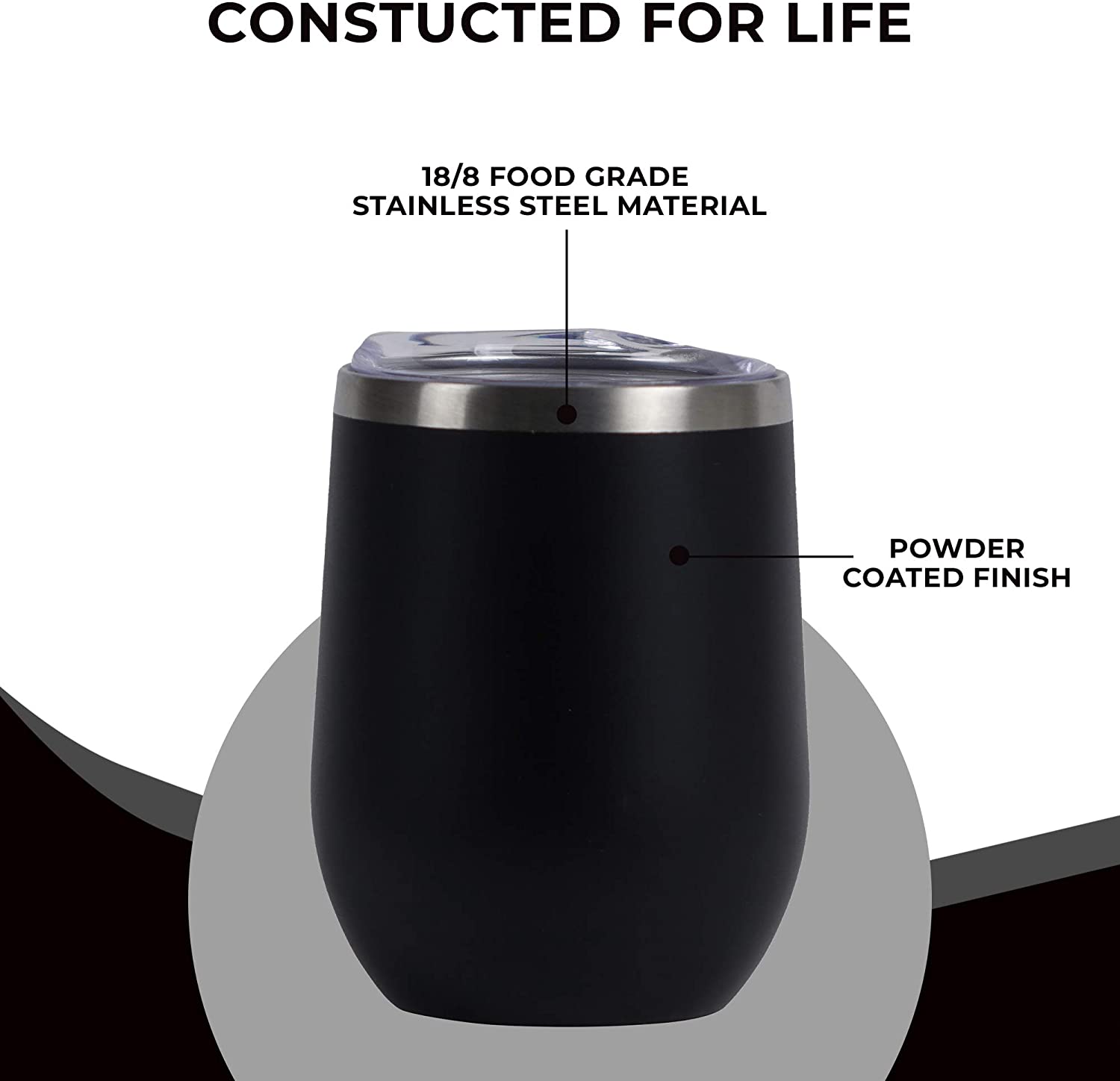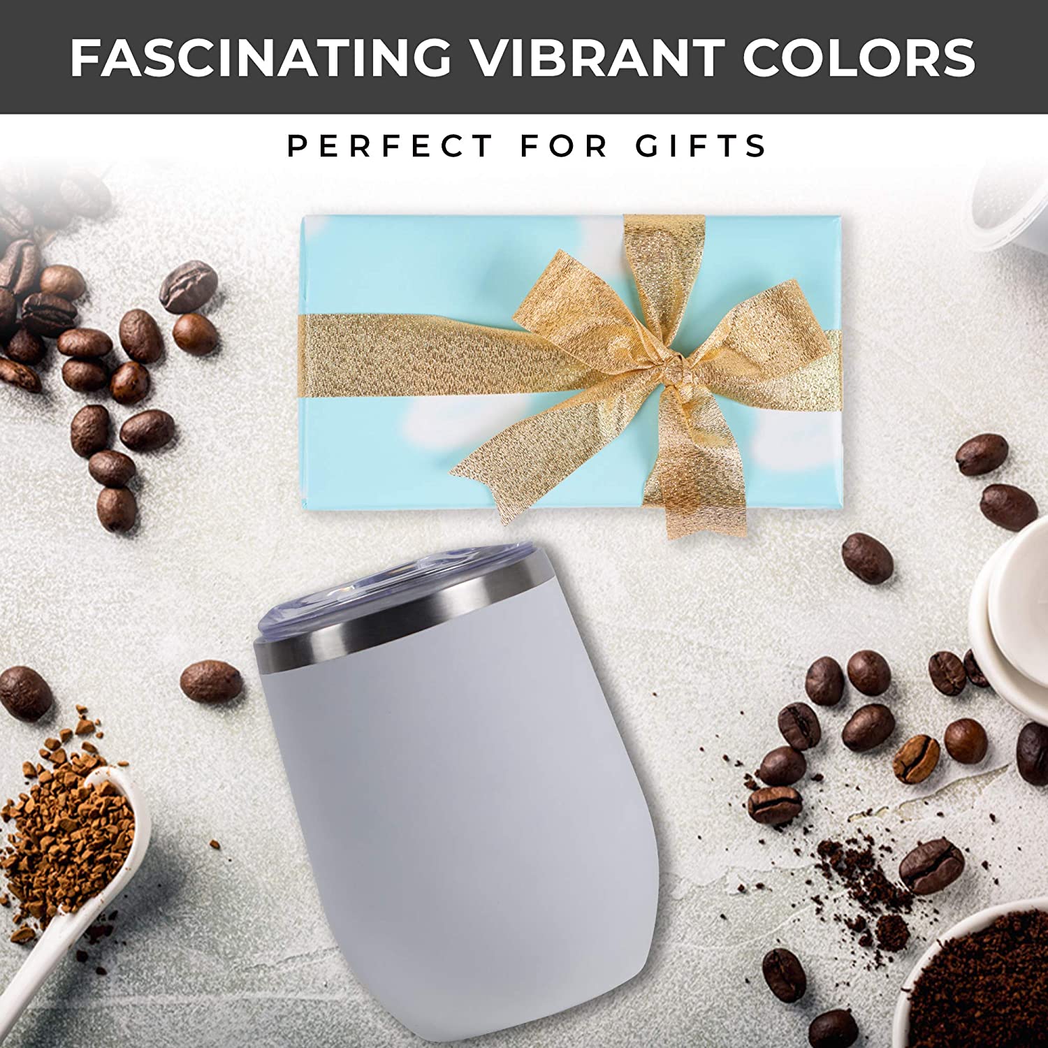12 oz Stainless Steel Tumbler with Lid & Gift Box | Wine Tumbler Double Wall Vacuum Insulated Travel Tumbler Cup for Coffee, Wine, Cocktails, Ice Cream, Powder Coated Tumbler