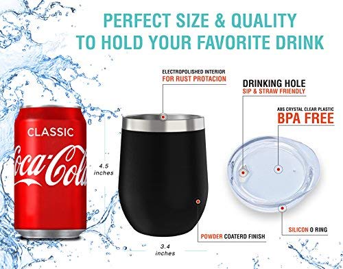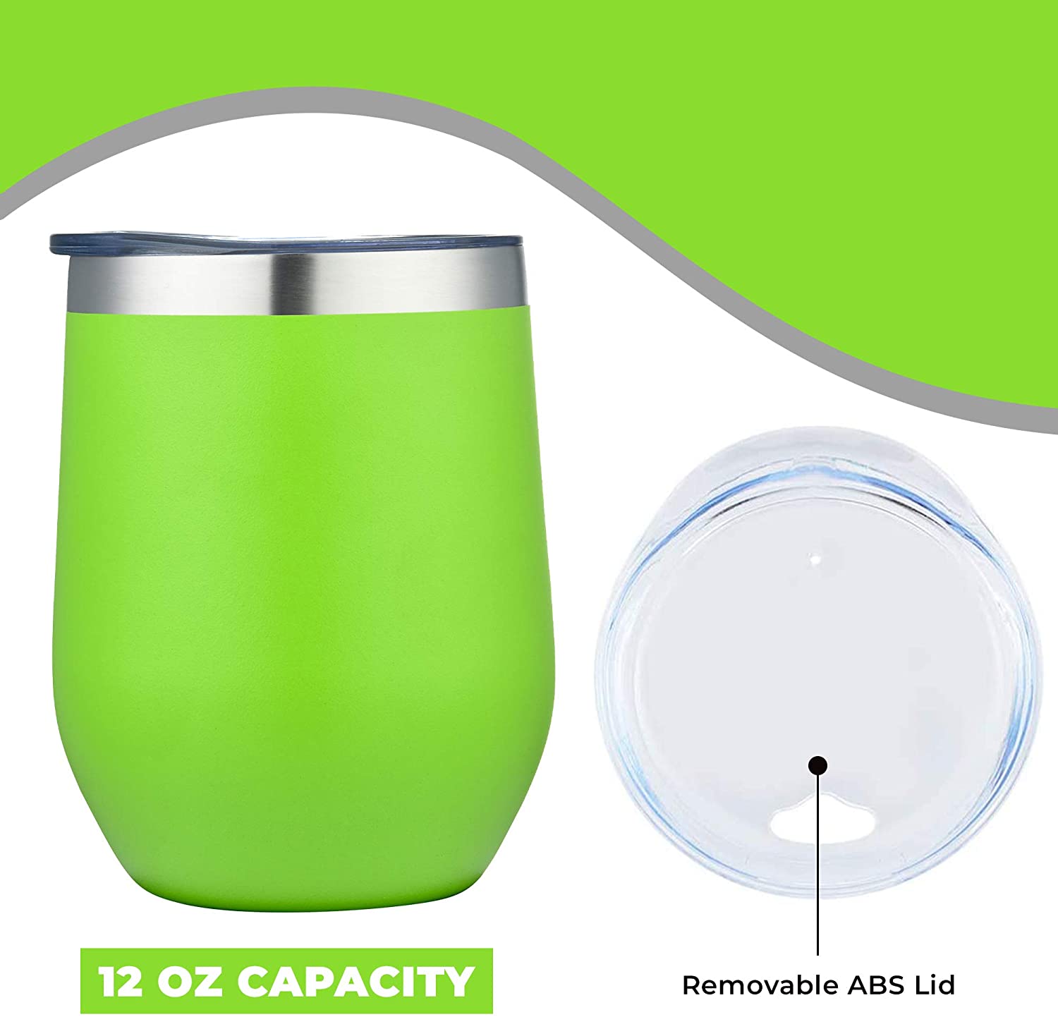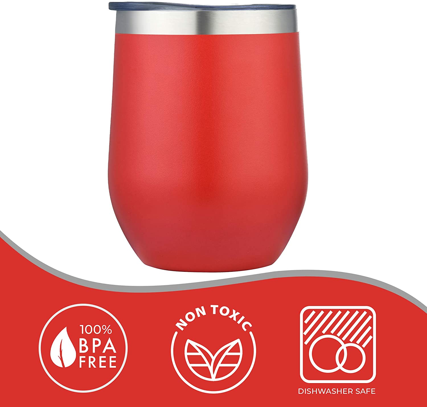 • ✅ GET A MODERN, EYE-CATCHING 12 Oz WINE TUMBLER that will add color to your life! Comfortable in the hand, portable and lightweight to take on your outdoor adventures! Worry no more about your little adventurers breaking their smoothie/juice/water or milkshake cups. UNBREAKABLE and SAFE for kids, teenagers and adults, it is a cute, trendy and youthful colored metal wine glass, your #1 choice in home/camping/holiday/sports/ travel stainless wine glass to go!