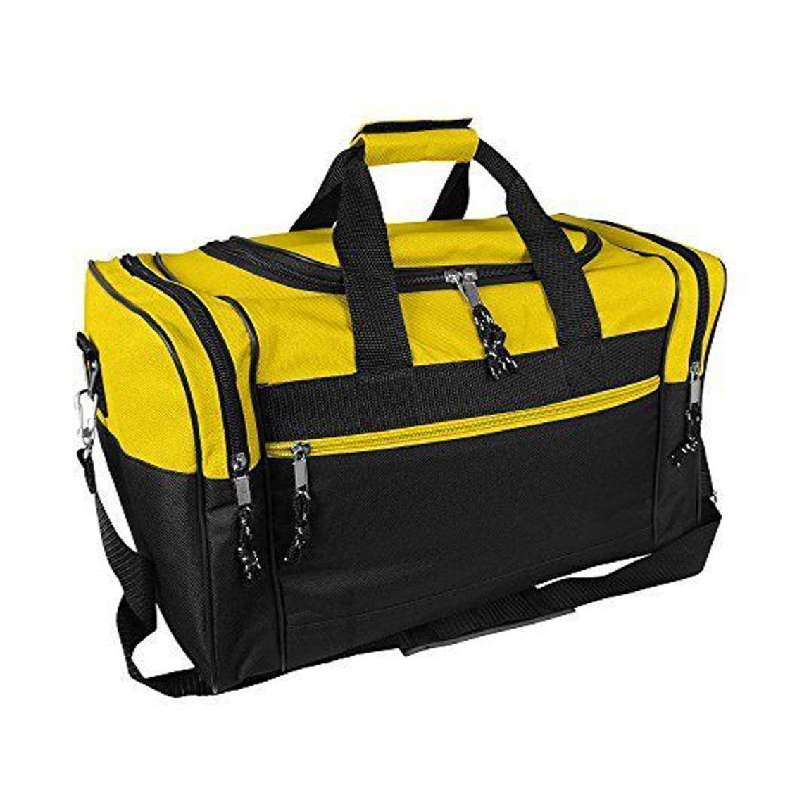• FEATURES: U-Shape zippered main compartment, two end zippered pockets, front zippered pocket, adjustable handle and removable shoulder strap.