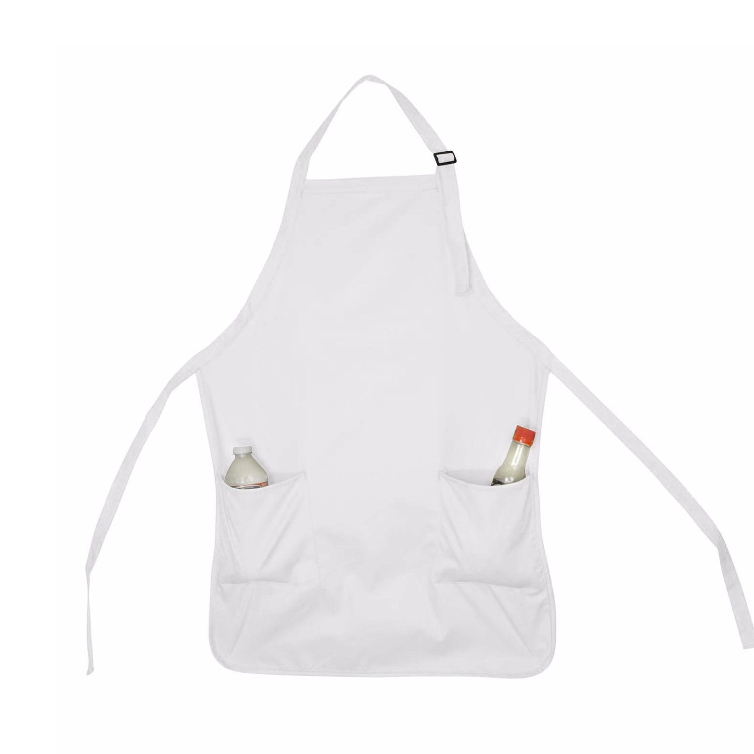 MATERIAL: 7 OZ. POLY-COTTON SIZE: 22" X 30" IMPRINT AREA: 7" X 9" FEATURE: 2 Front Pockets. ADJUSTABLE STRAP FOR MULTIPLE SIZING COLORS: ROYAL, RED, BLACK, NAVY, DARK GREEN, WHITE.....