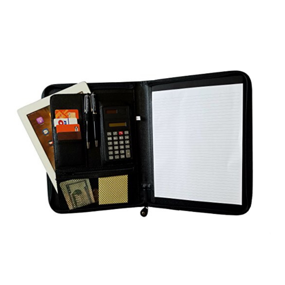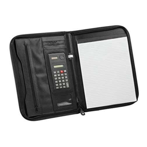 • Wraparound zipper provides security for important digital and paper contents. Calculate, notepad and pend slot (pen not included)